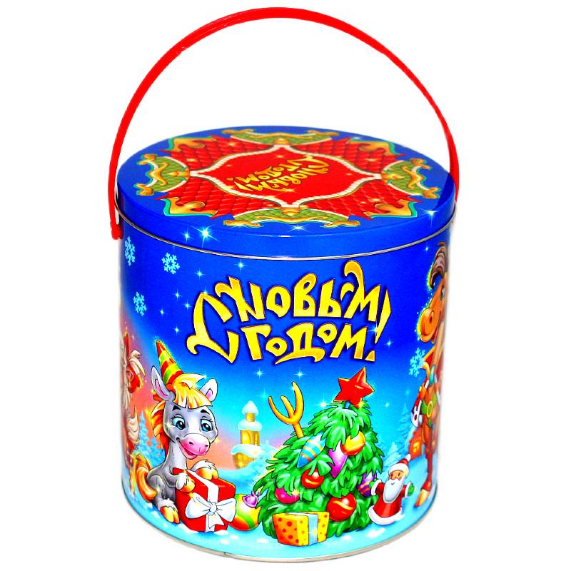 Сладкий подарок на Новый Год в жестяной упаковке весом 1000 грамм