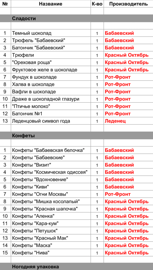 1. Проверить, можно ли внести изменения в состав подарка. Если нет, то скорее всего наборы были собраны еще летом из конфет, произведенных еще раньше